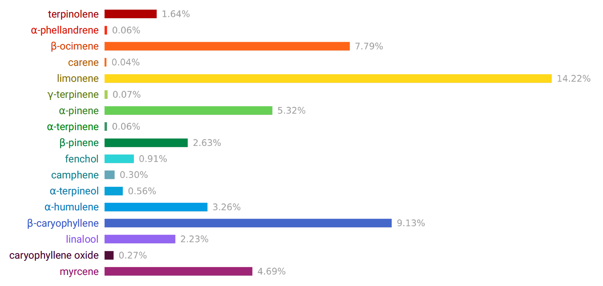- Limonene (14.22%): Limonene is a terpene known for its strong citrus scent, commonly associated with lemons. It is believed to have mood-enhancing properties and has been studied for its potential anti-anxiety and antidepressant effects.
